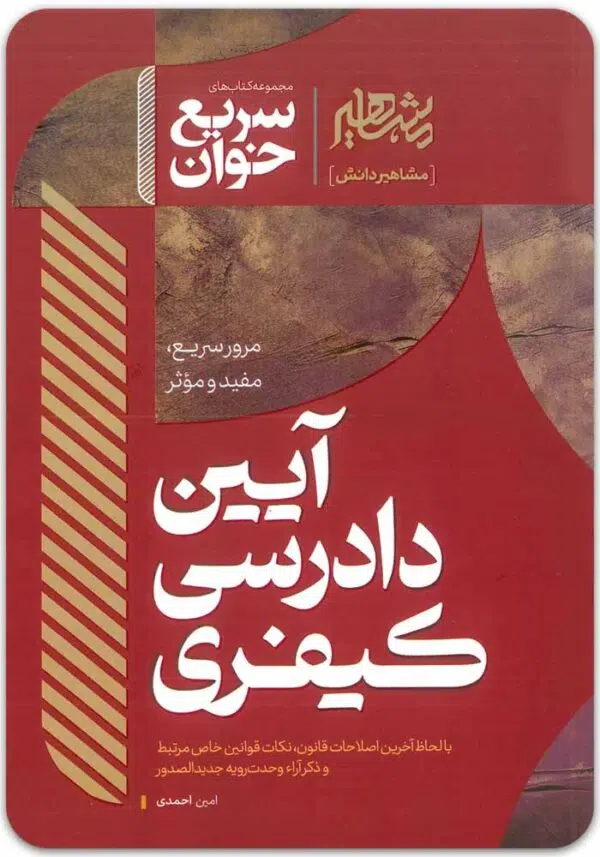 کتاب سریع‌ خوان آیین دادرسی کیفری تألیف استاد امین احمدی از جدیدترین آثار منتشرشده توسط انتشارات مشاهیر دانش است. این کتاب به عنوان بخشی از مجموعه‌ی “سریع‌خوان مشاهیر”، به‌صورت خاص برای داوطلبان آزمون‌های حقوقی از جمله آزمون وکالت، مرکز وکلای قوه قضائیه، آزمون‌های تکمیلی و سایر آزمون‌های تخصصی طراحی شده است.